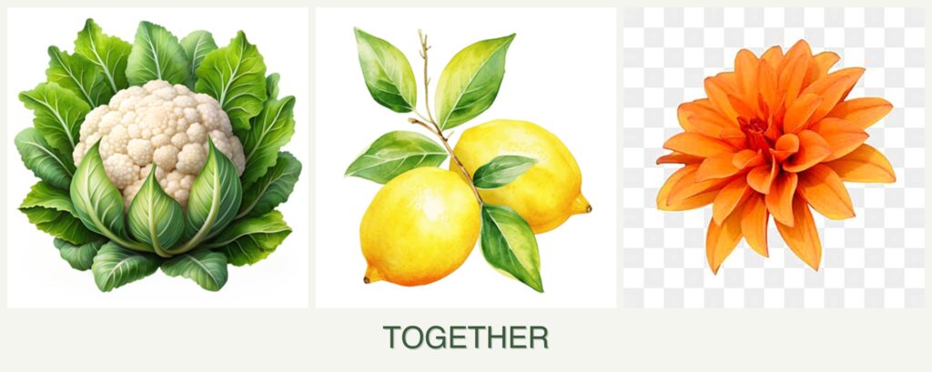 - Pest Repellent Properties: Certain companion plants can repel pests, although cauliflower, lemons, and dahlias do not share overlapping benefits in this regard.