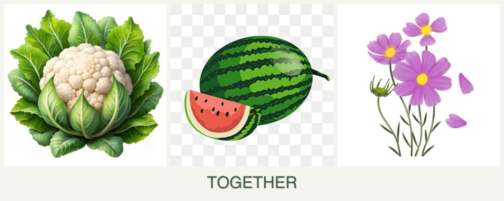 - Optimal Spacing: Ensure adequate space between cauliflower and melons to prevent competition. Cosmos can be planted on the garden’s periphery.