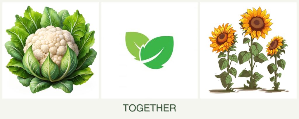 Pest Control: Mint is known for its pest-repelling properties, which can benefit cauliflower by deterring common pests like cabbage moths. Sunflowers attract beneficial insects, further enhancing pest control.