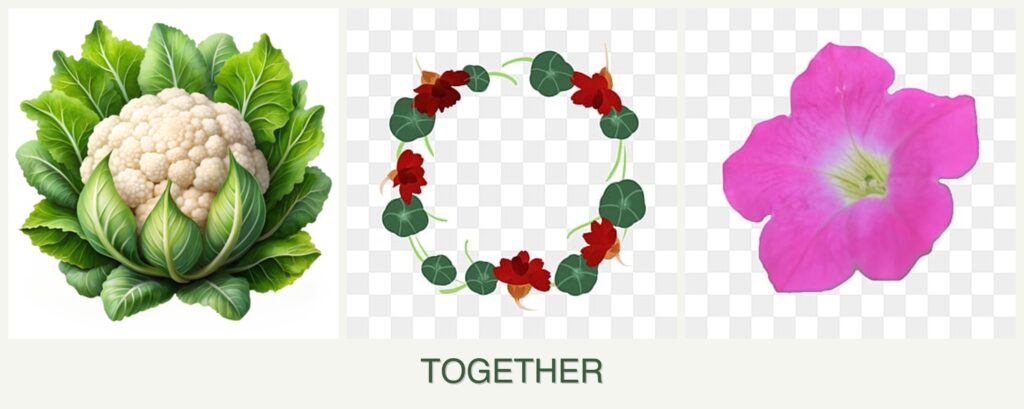 - Growth Requirements: Cauliflower thrives in cool weather, while nasturtiums and petunias prefer warmer temperatures. However, they can coexist during transitional seasons.