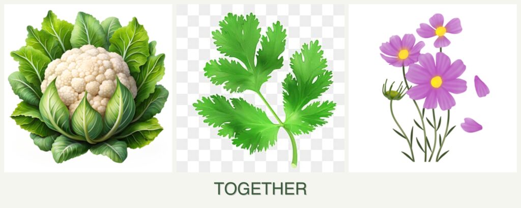 Planting cauliflower, parsley, and cosmos together offers several benefits: