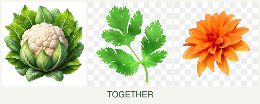- Competition for Resources: Cauliflower’s heavy nutrient demands may overshadow parsley and dahlias if not managed.