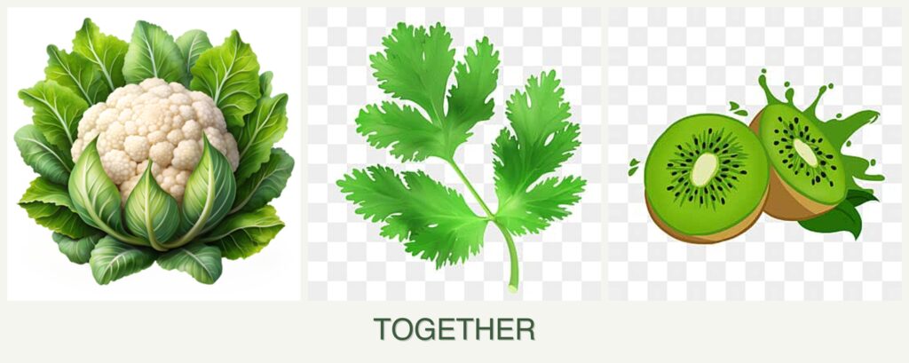 While planting cauliflower, parsley, and kiwi together isn’t ideal, there are benefits to pairing cauliflower and parsley. Parsley can repel pests like aphids and improve soil health with its deep taproots. It can also enhance the flavor of cauliflower. However, kiwi’s sprawling growth and different nutrient needs make it a poor companion for the other two.