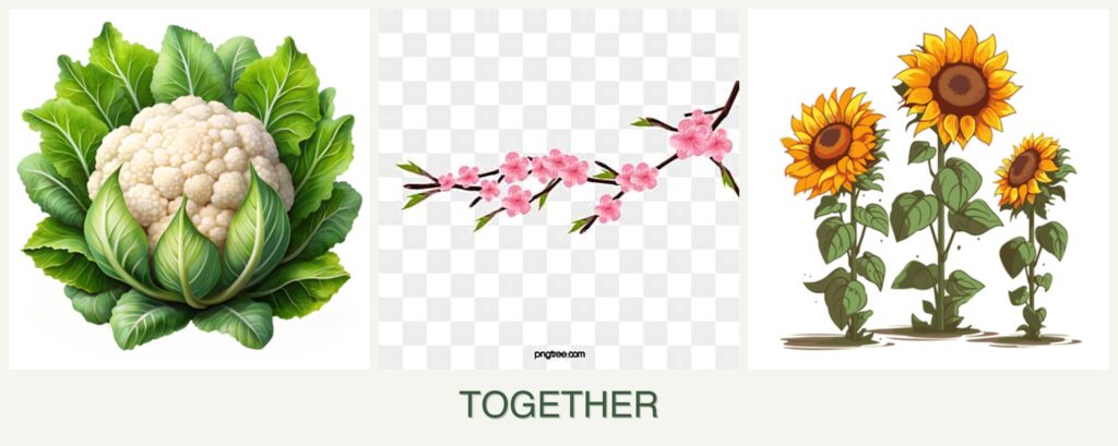 - Pest Repellent Properties: Sunflowers can attract beneficial insects that help control pests on cauliflower and peaches.