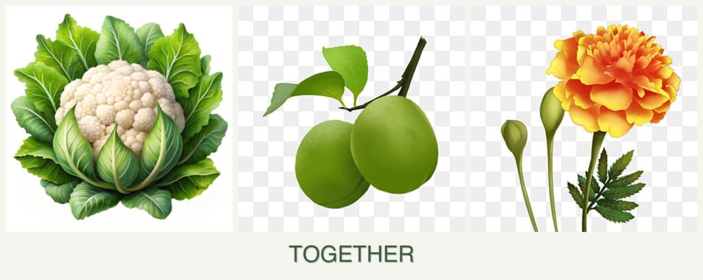 Can you plant cauliflower, plums, and marigolds together? Yes, you can plant these three together, but with some considerations. While they aren’t traditional companions, they can coexist with proper planning.