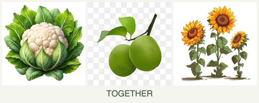 - Companion Plants: Consider planting cauliflower with other brassicas or leafy greens, and sunflowers with beans or corn.