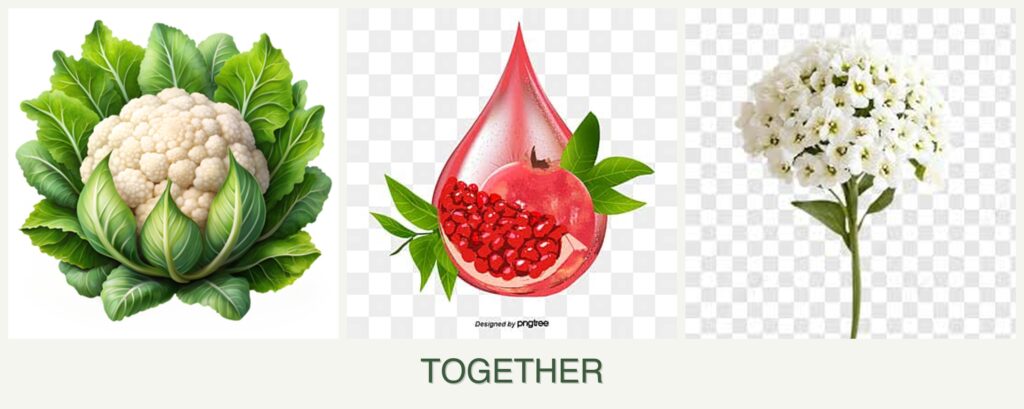 - Optimal Spacing: Keep cauliflower and alyssum spaced according to their needs, and plant pomegranates separately.
