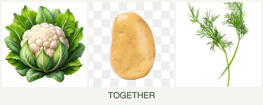 - Timing: Plant potatoes first, as they have a longer growing season; follow with cauliflower and dill.