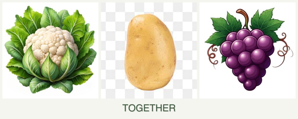 - Pest Repellent Properties: Certain plants can deter pests naturally, but in this case, cauliflower, potatoes, and grapes do not offer mutual pest protection.