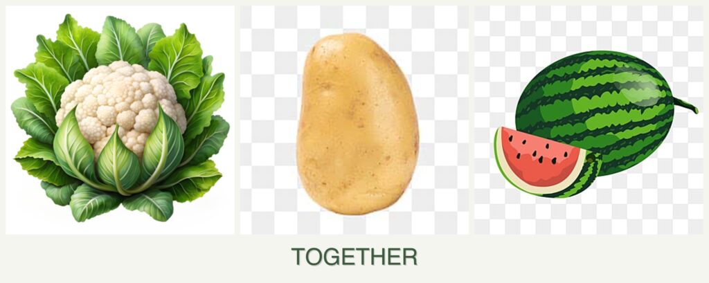 - Different Watering/Feeding Needs: Melons require more water than potatoes and cauliflower.