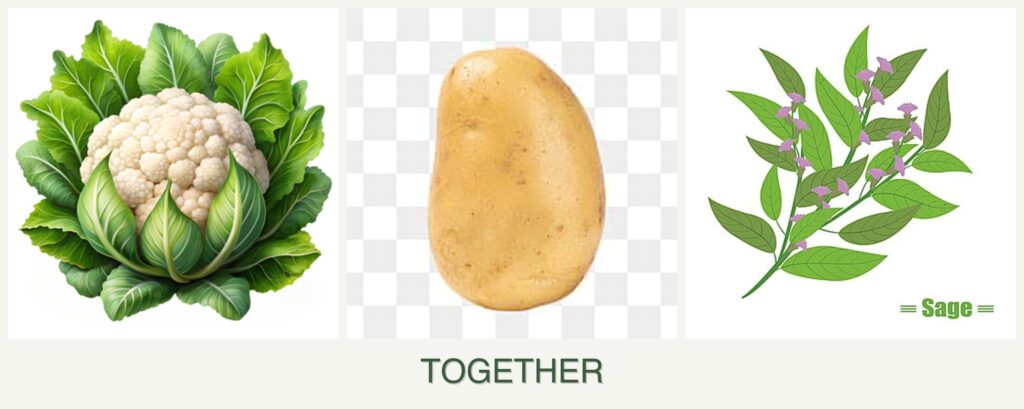 Space Efficiency: While potatoes should be planted separately, cauliflower and sage can be planted together to make efficient use of space.