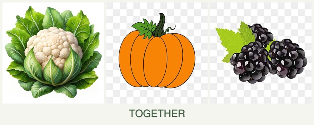 - Growth Requirements: Cauliflower thrives in cooler climates, while pumpkins need warmth. Blackberries, being perennials, have different seasonal cycles.