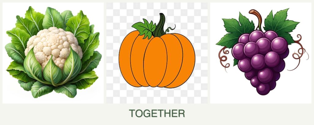 While cauliflower, pumpkin, and grapes are not compatible together, understanding the benefits of companion planting can guide better choices: