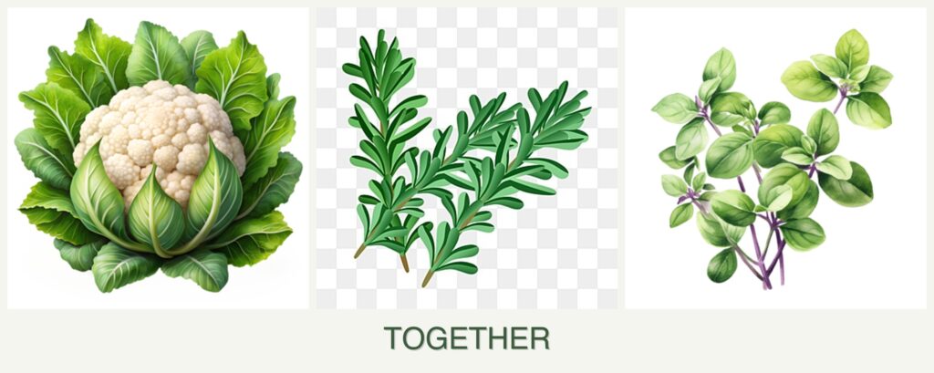 While cauliflower, rosemary, and oregano are not ideal companions, planting rosemary and oregano together can offer several benefits: