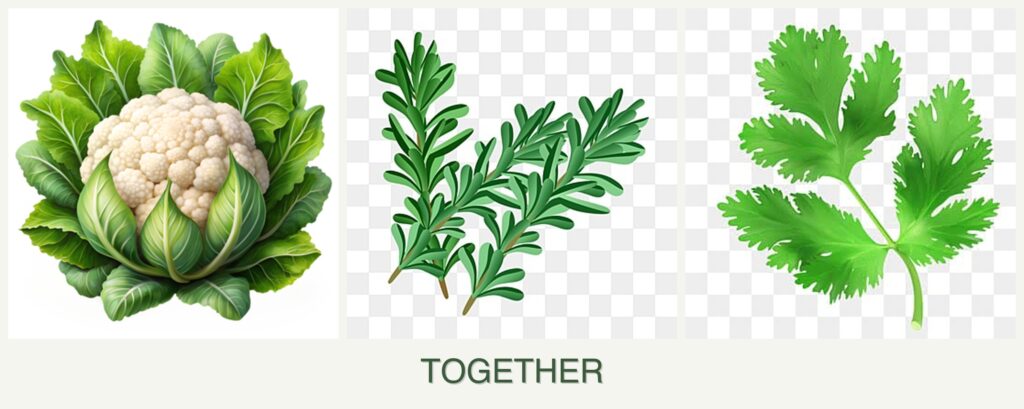 - Pest Control: Rosemary’s aromatic oils can repel pests that might otherwise target cauliflower, while parsley attracts beneficial insects.