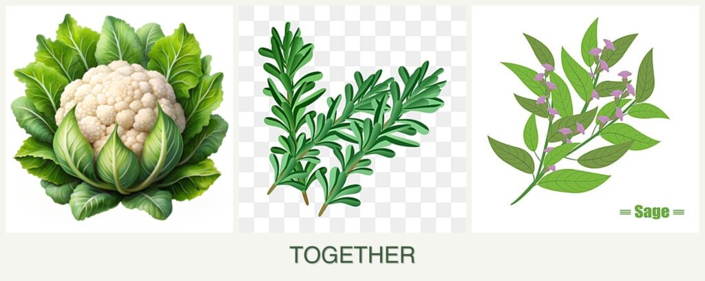 - Competition for Resources: Cauliflower’s high nutrient demands can compete with rosemary and sage if not managed properly.