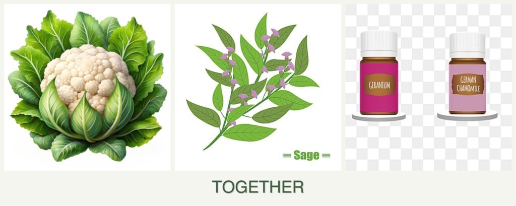 - Growth Requirements: Cauliflower requires cool temperatures, while sage and geraniums prefer warmer conditions. Planting them together may require timing adjustments.