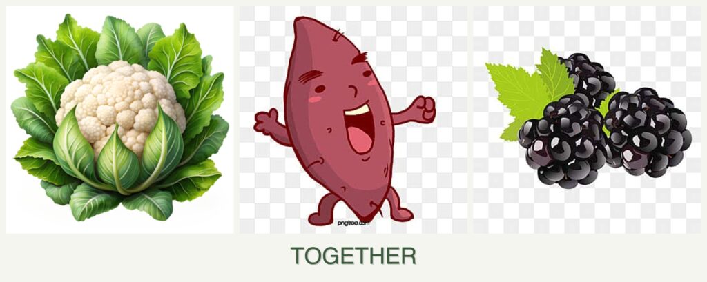 Can you plant cauliflower, sweet potatoes and blackberries together?