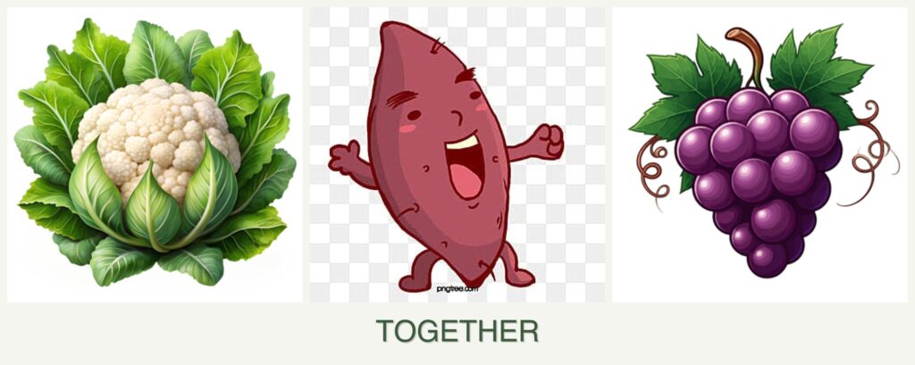 Growth Requirements: Cauliflower thrives in cooler temperatures, whereas sweet potatoes and grapes prefer warm climates. This fundamental difference makes it challenging to meet all their needs simultaneously.