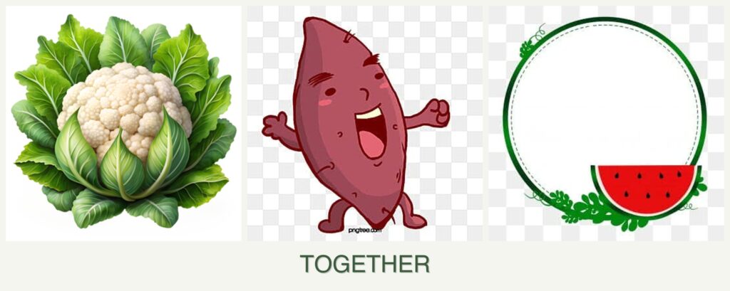 - Growth Requirements: Cauliflower requires cooler temperatures and consistent moisture, while sweet potatoes and watermelons need warm, sunny conditions.
