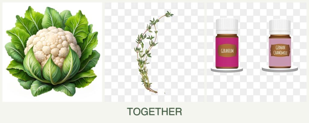 - Pest Control: Thyme and geraniums are natural pest repellents, protecting cauliflower from common pests like cabbage moths.