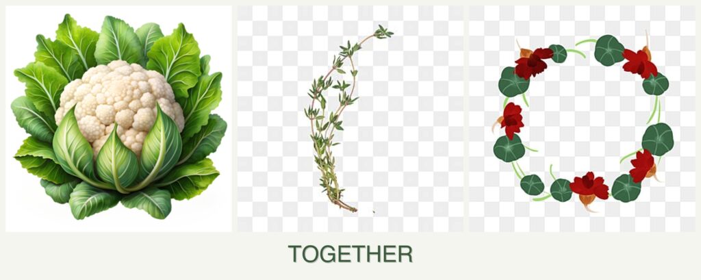 - Pest Repellent Properties: Thyme’s aromatic oils deter cabbage worms and other insects, while nasturtiums attract aphids away from cauliflower.