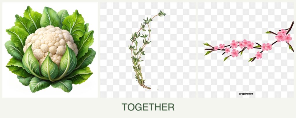 Cauliflower and Thyme: Thyme is an excellent companion for cauliflower. It helps repel certain pests like cabbage worms, which are common threats to cauliflower. Thyme’s low-growing habit also doesn’t overshadow cauliflower, allowing both to flourish.