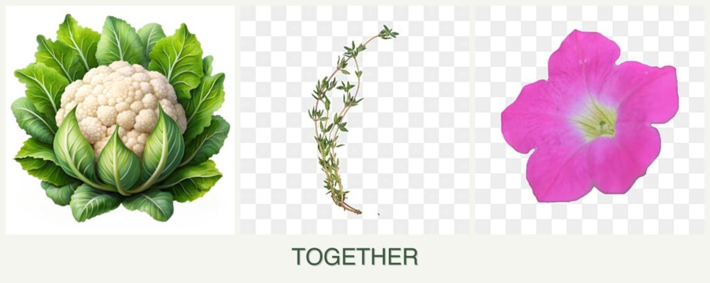 Can you plant cauliflower, thyme and petunias together?
