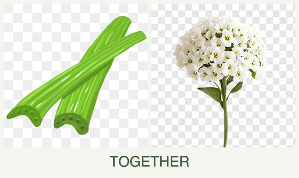 Growth Requirements: Both plants thrive in similar conditions, preferring well-drained soil and moderate watering. Alyssum’s low height does not overshadow celery, allowing both plants to receive adequate sunlight.