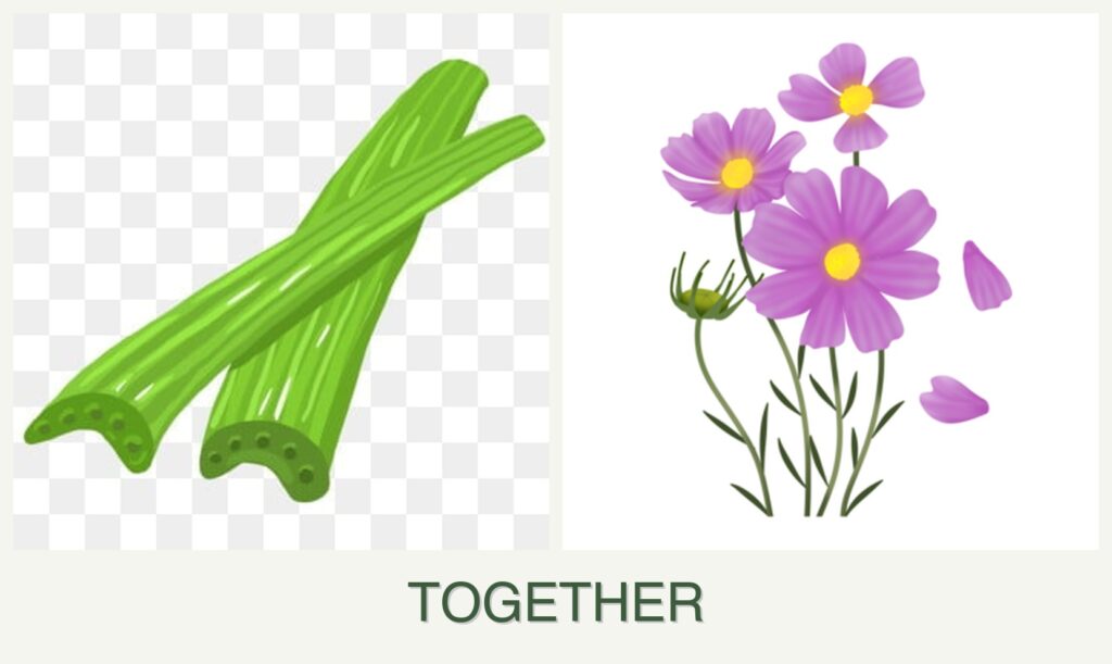 Planting celery and cosmos together offers several advantages:
