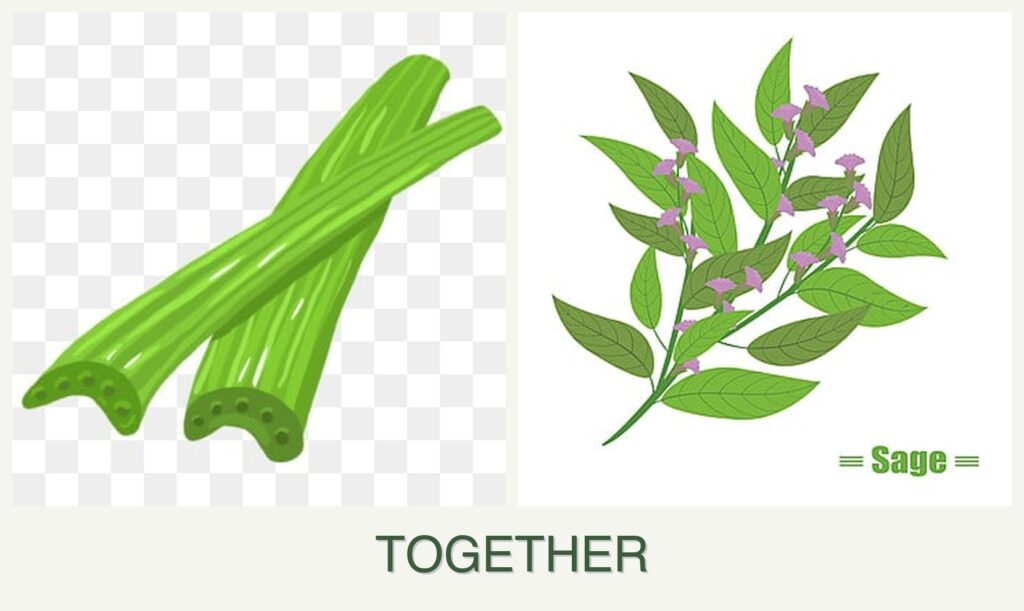 - Growth Requirements: Both celery and sage require similar soil conditions, though celery needs more water.
