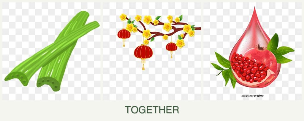 - Growth Requirements: Apricots and pomegranates are both fruit trees that require ample space and sunlight, whereas celery is a vegetable that thrives in cooler, shaded environments.