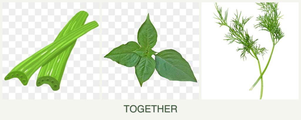Planting celery, basil, and dill together offers several advantages: