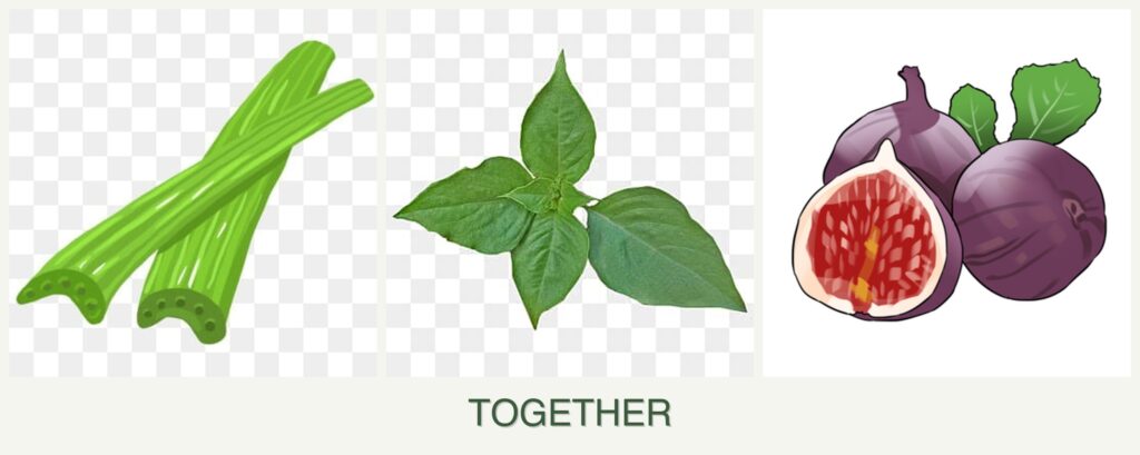 - Growth Requirements: Celery and basil both thrive in similar conditions, such as full sun and moist, well-drained soil. Figs, however, require more space and prefer slightly drier conditions once established.