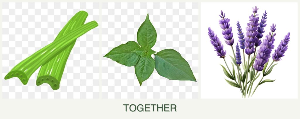 Solutions: Use raised beds or containers to control water distribution. Plant lavender slightly apart from celery and basil to accommodate its drier preferences.