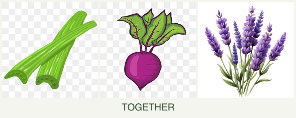- Nutrient Needs: Beets and celery both require nutrient-rich soil, but lavender is less demanding.