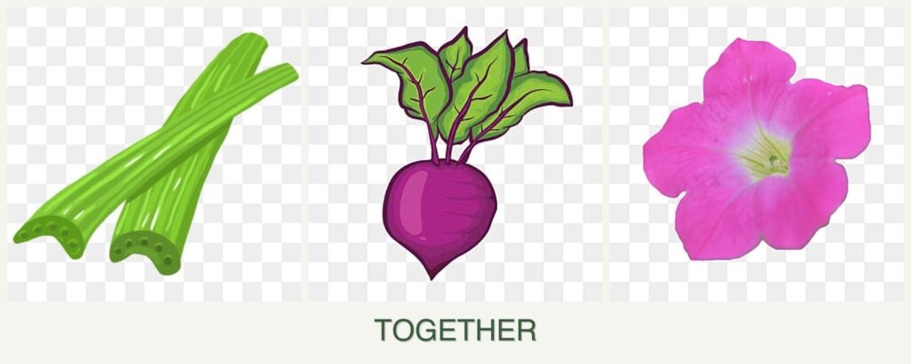 - Pest Control: Petunias are known for their pest-repellent properties, which can help protect celery and beets from common garden pests.
