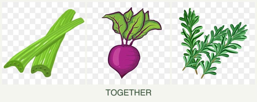 Celery can benefit from rosemary’s natural pest-repellent properties, as rosemary deters certain insects. Beets contribute to soil health by adding organic matter as they grow. However, be mindful of spacing to prevent competition for nutrients.
