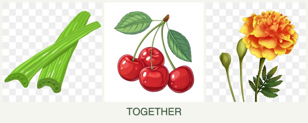 - Growth Requirements: Celery prefers cooler temperatures and consistent moisture, while cherries need full sun and well-drained soil. Marigolds adapt well to various conditions, making them versatile companions.