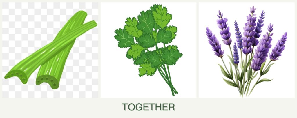 Planting celery, cilantro, and lavender together can offer several advantages: