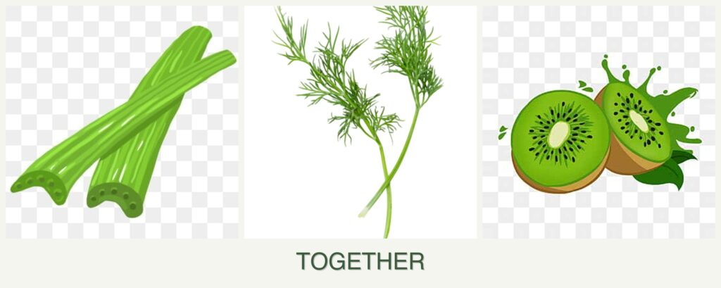 Growth Requirements: Celery and dill thrive in similar conditions, preferring cooler temperatures and consistent moisture. Kiwi, on the other hand, requires a warmer climate and more space to sprawl.
