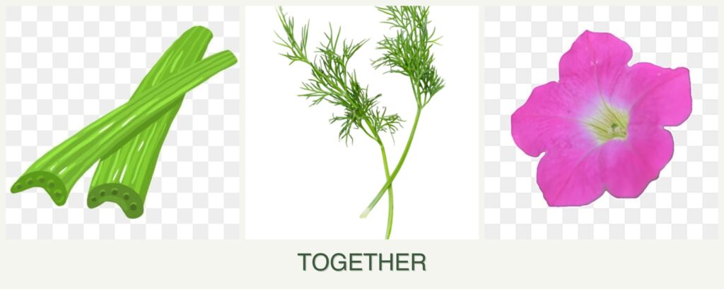 Can you plant celery, dill and petunias together?