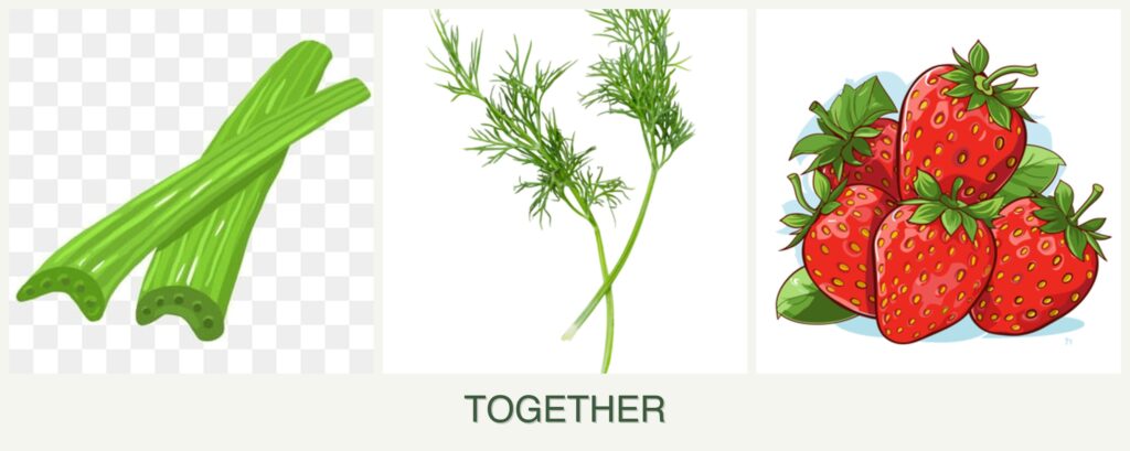 - Growth Requirements: Celery and dill prefer similar soil conditions, while strawberries need slightly different care.