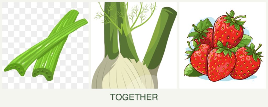 - Nutrient Needs: Celery and strawberries can share nutrient-rich soil, while fennel may compete for resources.