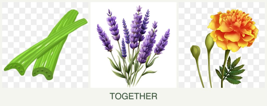 Planting celery, lavender, and marigolds together offers several benefits: