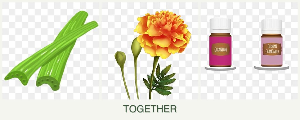 Planting celery, marigolds, and geraniums together offers several benefits: