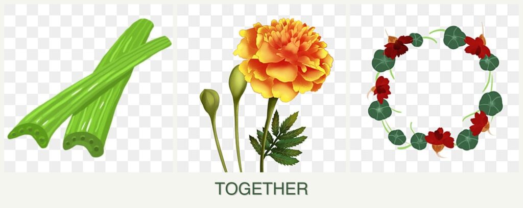 Planting celery, marigolds, and nasturtiums together offers several benefits: