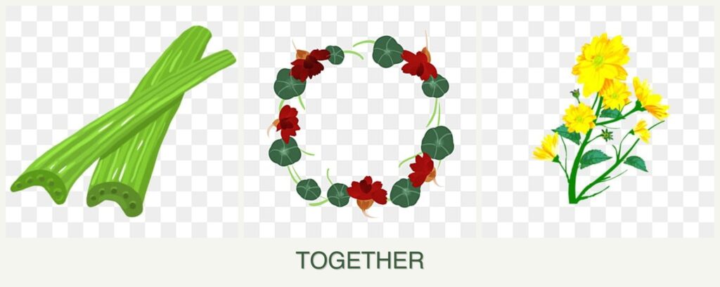 Planting celery, nasturtiums, and calendula together offers several advantages: