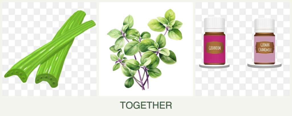 Planting celery, oregano, and geraniums together can offer several advantages: