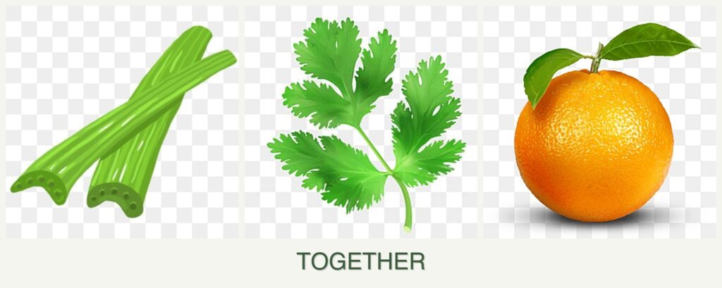 - Regularly prune orange trees to allow sufficient light for celery and parsley.